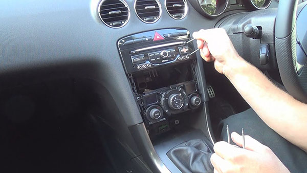 You must use the extraction keys simultaneously and push them in both sides of the dangel radio to extract it. This is a simple process and you can easily remove the external cover. Be careful not to damage you.