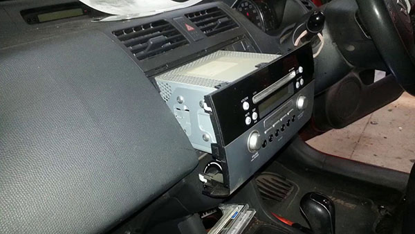 You can still use two extraction keys and put them at the corners of the radio frames and pull the frame by exerting pressure on the extraction keys. If it still does not work, you will have to remove the metal that holds it inside.