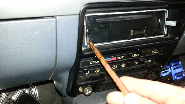 You can still use two extraction keys and put them at the corners of the radio frames and pull the frame by exerting pressure on the extraction keys. If it still does not work, you will have to remove the metal that holds it inside.